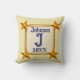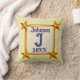 Esta almohada de monograma es una excelente manera de agregar un toque colorido a su hogar o crear un recuerdo especial para una boda o inauguración de casa. Un elegante patrón de estrella naranja aparece contra un fondo beige en la parte delantera y trasera de esta almohada. La letra "J" se presenta en un cuadrado junto con el nombre de la familia y el año. La letra, su nombre y año se pueden personalizar rápida y fácilmente. Diseño original - C. McGouldrick