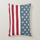 Esta almohada de acento de bandera patriótica estadounidense muestra las Estrellas y las Rayas en rojo, blanco y azul.