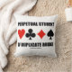 Si estás aprendiendo y reaprendiendo constantemente el juego del puente duplicado, disfrutarás de esta almohada de tiro con los cuatro trajes de cartas junto con el dicho "Estudiante Perpetuo de Puente Duplicado". No importa la edad que tengas si estás aprendiendo constantemente sobre cómo jugar el juego del doble puente, muestra este hecho con este memorable puente diciendo "tirar almohada"!