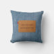 Cojín Decorativo Etiqueta de cuero personalizado Azul Jean Denim