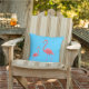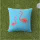 La almohada de tiro al aire libre se muestra en un color sólido de azul turquesa con una bonita impresión flamenca. Personalizar esta almohada o compra como está. Imagen de stock
