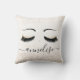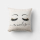 Hermosa y elegante almohada con pestañas sobre un fondo de diamante, capaz de ser personalizada con su nombre o negocio. Un gran elemento decorativo para tu sofá, dormitorio o establecimiento en la industria de la belleza.