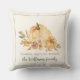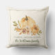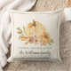 Calabazas florales de acuarela de otoño con la frase "agradecido. agradecido. bendecido." que es editable. La almohada puede ser personalizada con un nombre/familia en un guión en un verde grisáceo oscuro. El mismo gráfico en ambos lados de la almohada.