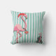 Flamingo inspirado en la decoración, vestido con medias de Navidad, sombrero de Santa y collares adornados con un fondo rayado en agua con hojas de palma estilizadas y caña de caramelo. Ilustracion dibujado a mano por McBooboo.