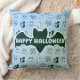 Cojín Decorativo Fantasma, telarañas y gatos negros azul