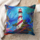 Hermoso faro de rayas rojas y blancas sobre un rocoso desborde rodeado de vientos coloridos y aguas agitadas AI Art creado por minx267