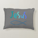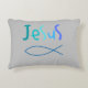 Una almohada básica de fe en los verdes y azules dice simplemente "Jesús" con el símbolo cristiano del pez. Me encanta el diseño simplista y cada lado es un tono diferente de gris de fondo. Comparte esto con la familia y amigos de la fe como un buen regalo para todos.