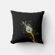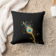 Haz una declaración de moda con esta almohada moderna de plumas de pavo real con una elegante pluma de pavo real dorado con un único ojo de pavo real en forma de corazón azul contra un fondo negro.