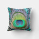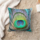 Cojín Decorativo Feather de pavo real sobre turquesa