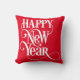Sencillo y moderno rojo y blanco Feliz Año Nuevo almohada de lanzamiento