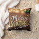 imagen simple de madera en el fondo con texto de Feliz Navidad y una cadena de luces en la parte superior.