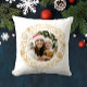 Feliz Cojín decorativo de Navidad con oro. Una almohada gráfica de Navidades festivos con tu foto en la corona de oro de los Navidades.