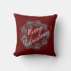 Qué almohada de Navidades rojos bonitos para la decoración de tu casa. Feliz guión de Navidad con una hermosa corona verde con bayas huecas. Esto se verá encantador en tu sofá o cama.