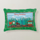 El tren navideño Merry tiene un tren personalizado de colores brillantes con un pequeño perro escocés.