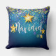 Pillow - Feliz Navidad en fondo azul con estrellas de oro - Ver este diseño en placas, servilletas, tartas y más en mi tienda.