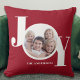 Añada un toque de alegría a su decoración festiva de este año con esta moderna foto de Pillow para Navidades. Está decorado con la palabra JOY en tipografía blanca moderna sobre un fondo rojo marrón. Personalizable fácil con tu foto y nombre.