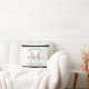 Crea tu propia y elegante almohada de lanzamiento de vacaciones! Este diseño estacional presenta la redacción de Navidades más meritorios en verde forestal enmarcando un monograma de familia de personalizado gris claro inicial y texto de familia de guiones negros que se puede personalizar. Las rayas blancas y negras acentúan el diseño moderno de la tipografía.