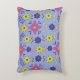 This pillow dances with sun-drenched hues: deep cobalt blue, burnt orange, fiery raspberry, and golden yellow, woven together on a periwinkle background, like a desert sunset.