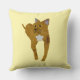 Yellow Fiona the cat throw pillow for decoration on couch.