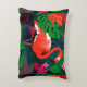 Cojín Decorativo Flamingo rosa. Hojas tropicales, mariposa rosada,