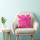 Almohada impresa con un original cuadro de flores acuáticas en rosa fucsia caliente sobre fondo blanco.