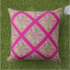 Una flor abstracta en una miríada de tonos rosas, naranjas, verdes, azules, lavanda, violeta, amarilla, aqua, perenne y más. La manta diagonal le da un aspecto moderno y de tejido en esta almohada.