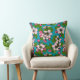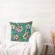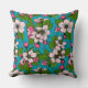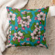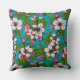 Flores de manzana dibujadas a mano y abejas con un fondo turquesa