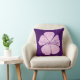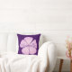Una sola flor Lavatera rosa con tu propio nombre sobre una almohada morada oscura.