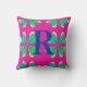 Cojín Decorativo Flor retro verde esmeralda magenta monograma
