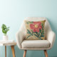 Esta almohada presenta un ilustracion floral vintage sobre un fondo de estilo de papel escrito con texto débil. La decoración es antigua y está muy cuidada.