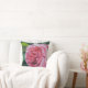 Cojín Decorativo Flor rosada de peonía con hojas verdes, cuadrado