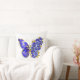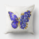 Joyería, azul, zafiro, mariposa floral brillante con ala decorada con flores azules y preciosas con hojas de oro sobre fondo blanco.