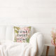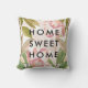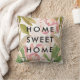 Esta elegante almohada cuenta con flores de color rosa oscuro y hojas verdes de moda, con las palabras "hogar dulce hogar" en texto negro moderno. Hemos usado arte de Create the Cut.
