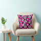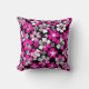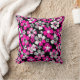 Striking Pink, Grey, and White flowers on a black background cushion.