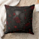 Cojín decorativo floral rojo y negro. © Dark Heart Desires. Una academia gótica floral roja y negra arroja almohada con rosas rojas.