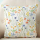 Cojín Decorativo Floral silvestre acuarela verde naranja