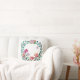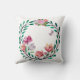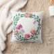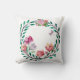 Esta elegante corona floral presenta delicadas flores pastel. Las hojas verdes forman la base de la corona, que está recubierta de flores, en suaves rosa pastel y melocotón. Dentro de la corona hay una pequeña mosca de dragón. El diseño está a ambos lados de la almohada.