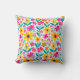 Una almohada decorativa cubierta de flores audaces y coloridas en tonos cálidos de amarillo, rosa, rojo y azul turquesa, que añade un encanto alegre y moderno a sofás, camas y espacios acogedores de lectura. Un acento elegante y listo para regalar para amantes de los estampados florales brillantes y la decoración hogareña inspiradora.