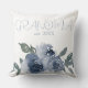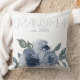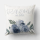 Esta almohada personalizado presenta un sano tema floral. En la parte inferior hay un ramo de flores azul acuarela. El título de la abuela se imprime en un tipo de letra escrito a mano con escritura del año establecido.