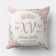 Personaliza esta elegante almohada de cumpleaños Quinceañera / Sweet 16 de flores rosadas de manera fácil y rápida. Simplemente haz clic en el botón Editar con Herramientas de Diseño para editar aún más los textos, cambiar las fuentes y los colores de las fuentes. Cuenta con hermosas flores de cerezo en acuarela, mariposas de color dorado rosa y un marco geométrico dorado rosa. Agrega tu fotografía de quinceañera en la parte posterior de la almohada. Esto hace un recuerdo perfecto para quinceañera, sweet sixteen, cumpleaños número 18, baile de debutante y muchas más ocasiones. Artículos coincidentes disponibles en la tienda. (c) Somerset Fine Paperie