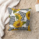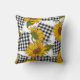 Cojín Decorativo Flores de girasol brillantes en parches a cuadros.