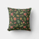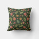 La almohada caprichosa presenta flores acuarelas y un patrón de hojas en el fondo verde del bosque