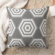 Elegante forma hexagonal abstracta geométrica en almohada gris y blanco