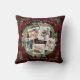 "Foto de familia campesina acuarela Cono de pino y corona de flores con Cojín decorativo de tipografía Purpurina de oro". Personalizado con el nombre de su familia y las fotografías. Pintura de color de agua en un elegante estilo de moda rural para el invierno y las vacaciones de Navidades. Mensaje de estilo tipográfico dorado, "ESTA ES LA TEMPORADA". Un rústico telón de fondo de madera de pino restaurado con manchas burdeos desplaza el cono de Pino y la corona con vegetación de hojas verdes y acentos de sutil purpurina de oro. Arte de la artista y diseñadora con licencia internacional, Audrey Jeanne Roberts, copyright.