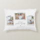 Sentimientos alegres instantánea foto acento almohada. Características, 3 fotos enmarcadas con acentos de cinta washi estilo scrapbook, dos líneas de texto de plantilla para el mensaje y nombres con detalles de corazón en gris suave sobre fondo blanco y gris.