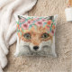 Este retrato de la acuarela de las características del diseño de un zorro que lleva un halo de flores.