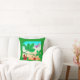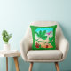 Tirar una almohada en un ilustracion digital de fresas maduras sobre una rama de hojas verde esmeralda contra un suave y naranja a un fondo celeste turquesa, atardecer, visitado por una libélula alada morada