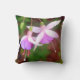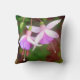 Hermosa, elegante y delicada fotografía de flores de fucsia de nuestro jardín. Los colores violeta, rosa y blanco se combinan en un suave fondo mudo de verdes. El diseño está en la parte delantera y trasera de este cojín. Magnífico, romántico y hermoso para cualquiera que ame las flores.