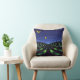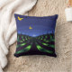Esta fantástica almohada de tiro abstracto presenta un paisaje surrealista de cielo en olas de azul sobre tierra verde y negra que llegan hasta el infinito, todo en una luz luminosa. Tres palomas doradas parecen estar volando fuera del vacío infinito. La imagen se repite en la parte posterior.