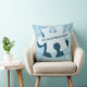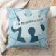 Fun Jigsaw Puzzle "I’m the birthday piece!" Blue Throw Pillow features a jigsaw puzzle and a piece with the text "I’m the birthday piece!" and "Birthday Puzzle Champ!" on the back. Customize the text to your child's birthday theme. Replace the complete text or leave the placeholder empty. All elements are color customizable.